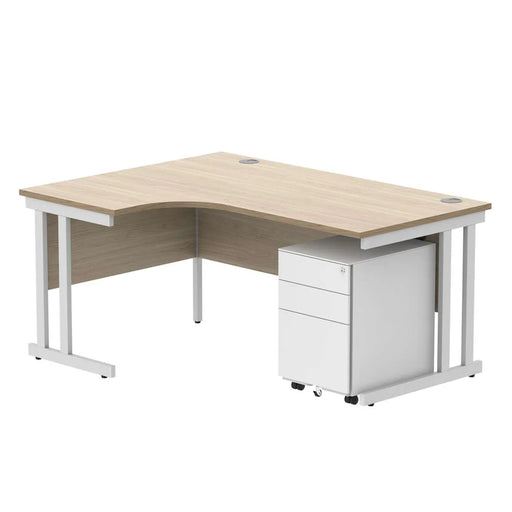 Double Upright Left Hand Radial Desk + 3 Drawer Mobile Under Desk Pedestal