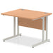 Impulse contract desk | 25mm tops | Heat resistant melamine finish | 18mm modesty panels | 2mm protective abs edging | Double strut legs | 2 cable ports | Height adjustable feet | Steel to steel fixings | 2 modesty panels slots| Deep set modesty panel (5") allows for compatibility of most screen clamp fittings | Weight Capacity 135Kg