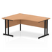 Impulse contract 1600 wide crescent desk | 25mm tops | Heat resistant beech melamine finish | 18mm modesty panels | 2mm protective abs edging | Silver coated double strut legs | 3 cable ports | Height adjustable feet | Steel to steel fixings | 3 modesty panels slots | 600 deep | Deep set modesty panel (5") allows for compatibility of most screen clamp fittings | Weight Capacity 135Kg