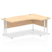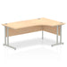 Impulse contract 1400 wide crescent desk | 25mm tops | Heat resistant beech melamine finish | 18mm modesty panels | 2mm protective abs edging | Silver coated double strut legs | 3 cable ports | Height adjustable feet | Steel to steel fixings | 3 modesty panels slots | 600 deep | Deep set modesty panel (5") allows for compatibility of most screen clamp fittings | Weight Capacity 135Kg