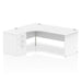 Impulse contract workstation | 25mm tops | Desk and pedestal combined | Heat resistant beech melamine finish | 18mm modesty panel | 2mm protective abs edging | Matching panel ends | Multiple cable ports | Height adjustable feet | Steel to steel fixings | Modesty panel slots wire slots| Deep set modesty panel (5") allows for compatibility of most screen clamp fittings