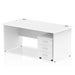 Impulse contract workstation | 25mm tops | Desk and pedestal combined | Heat resistant maple melamine finish | 18mm modesty panel | 2mm protective abs edging | Matching panel ends | Multiple cable ports | Height adjustable feet | Steel to steel fixings | Modesty panel slots wire slots| Deep set modesty panel (5") allows for compatibility of most screen clamp fittings