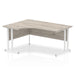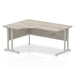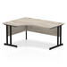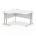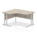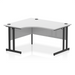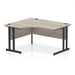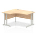 Impulse contract wide crescent desk | 25mm tops | Heat resistant melamine finish | 18mm modesty panels | 2mm protective abs edging | Double strut legs | 3 cable ports | Height adjustable feet | Steel to steel fixings | 3 modesty panels slots | 600 deep | Deep set modesty panel (5") allows for compatibility of most screen clamp fittings | Weight Capacity 100Kg