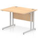 Impulse contract desk | 25mm tops | Heat resistant melamine finish | 18mm modesty panels | 2mm protective abs edging | Double strut legs | 2 cable ports | Height adjustable feet | Steel to steel fixings | 2 modesty panels slots| Deep set modesty panel (5") allows for compatibility of most screen clamp fittings | Weight Capacity 135Kg