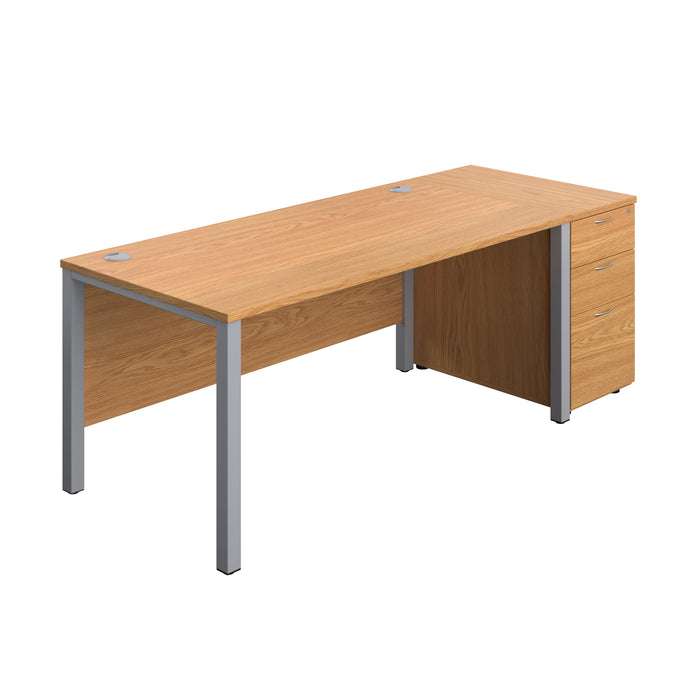Goal Post Rectangular Desk + 3 Drawer Desk High Pedestal