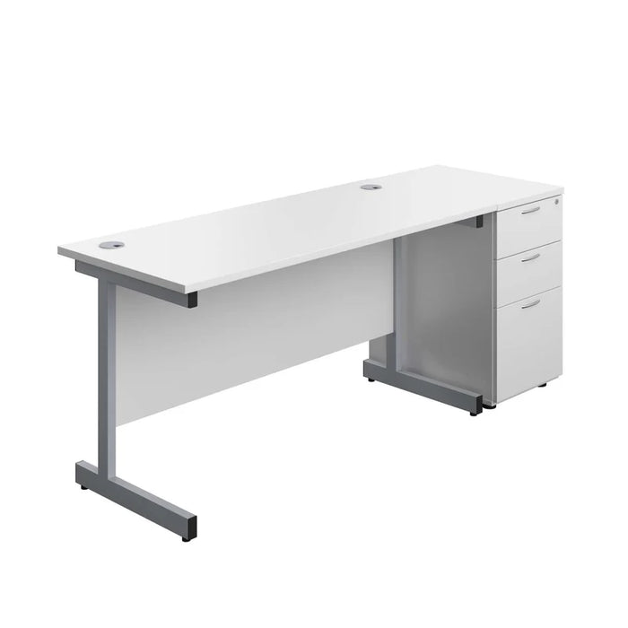 This Desk Bundle Features A Single Leg Steel Frame Workstation with Storage Pedestal Included.